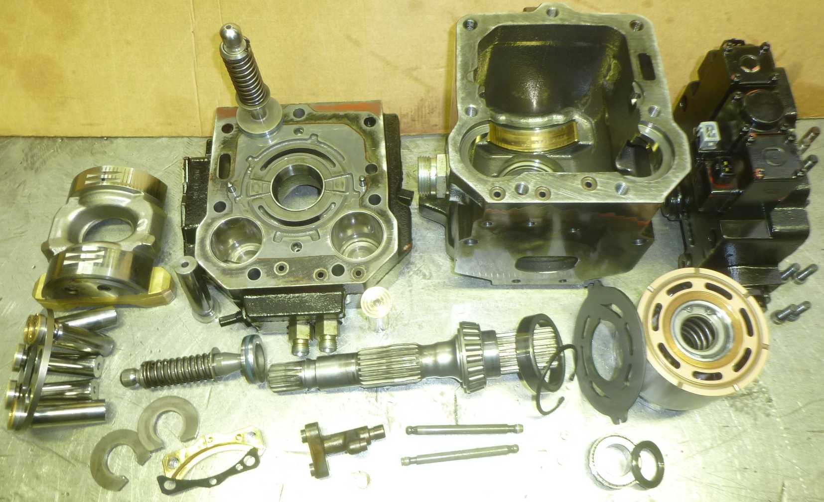 On réparent tous type et marque de pompes hydraulique Rexroth, hydromatik, brueninghaus, Sauer, Linde, Komatsu etc…